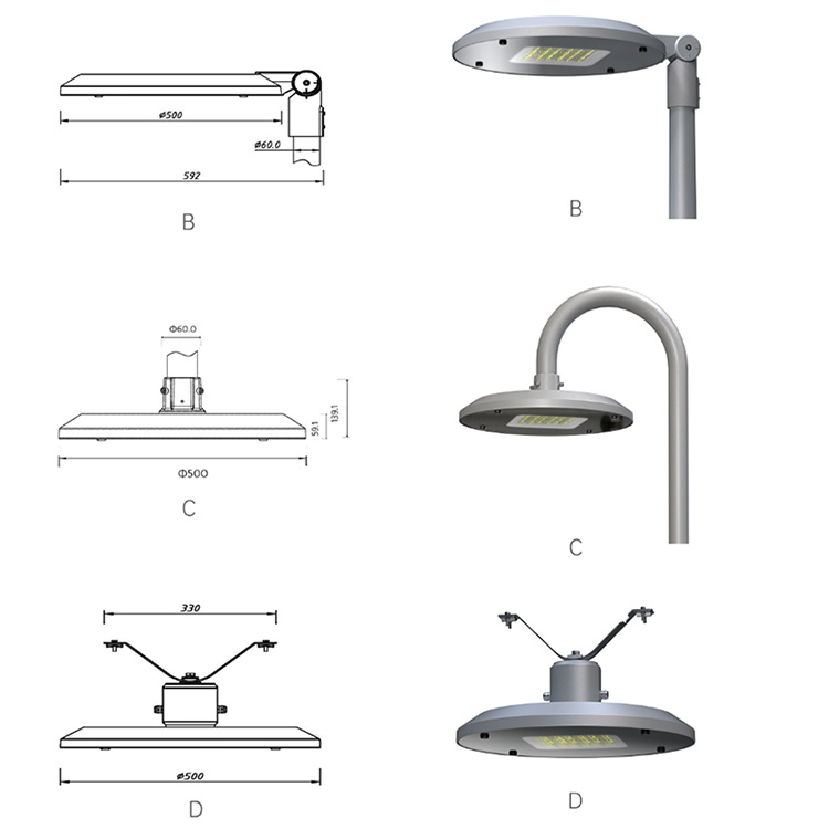 | Dimensioni alloggiamento (mm) | Φ500*500*450 | Φ500*500*168 | Φ500*500*139 | Φ500*500*286 | Corpo in alluminio, vetro blindato, anello in gomma impermeabile, viti 304 s/s, |